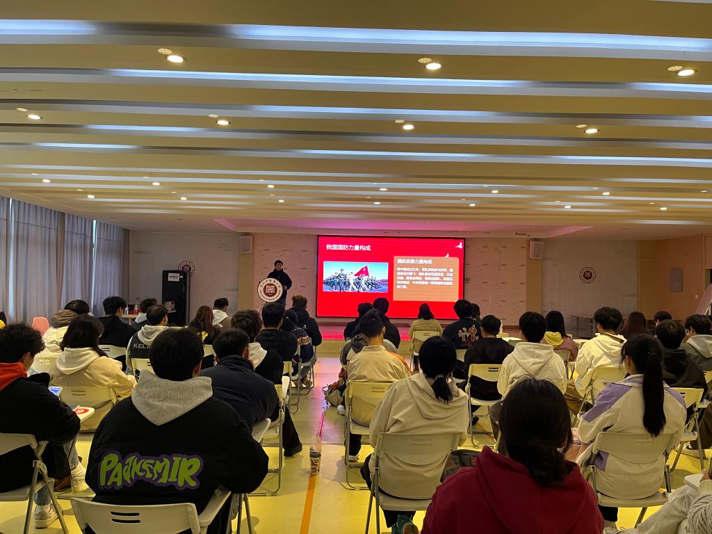 会上,严老师首先对最新的国家征兵政策进行了全面而细致的解读,内容涵盖了入伍条件、报名流程、选拔标准以及国家为鼓励大学生参军出台的各项优待政策,如学业保障、经济补助、退役安置及未来发展优势等,为有意向参军入伍的同学提供了清晰、权威的政策指引。随后,严老师结合自身经历,生动分享了在军营中的成长与收获。他从角色转变、意志磨练、技能提升、战友情谊等多个角度,讲述了军旅生涯对个人成长的深刻影响,展现了当代军人忠诚、担当、奉献的精神风貌。其真挚的分享,让同学们对军营生活有了更直观、更深刻的认识,极大地激发了大家的从军梦想和爱国情怀。