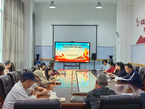 会上,严丽娜领学《习近平关于加强党的作风建设论述摘编》中“中央八项规定是改进作风的切入口和动员令,是长期有效的铁规矩、硬杠杠”。严丽娜要求全体教师要强化对学生的思想政治教育,引导学生树立正确的价值观和人生观。要积极推动教育创新,提升教学质量,培养符合中国式现代化要求的高素质人才。要准确把握和主动顺应经济发展新常态和高等教育发展新趋势,寻求学科合作共建,加强学科内涵建设,优化促进学科交叉融合发展,带动学科和专业联动发展。幸兴领学《习近平关于加强党的作风建设论述摘编》中“持续深化纠治‘四风”和《习近平文化思想学习纲要》中“推动文化繁荣、建设文化强国——关于担负新时代的文化使命”。幸兴要求全体教师要严格落实习近平总书记“作风建设永远在路上”的指示,建立“师生需求直通车”机制,设立师生沟通电话;领导班子定期参与运动队训练,通过“场馆办公日”现场解决器材、训练场地不足等问题。运用《纲要》强调的“数字化文化传播新形态”,打造“清风体育”品牌:批判现代赛事中的天价会费乱象;创建“体育场馆低碳运行”,将赛事灯光能耗、运动会浪费率等纳入日常指标,践行绿色发展理念。成洋领学《习近平总书记关于党的建设的重要思想概论》中“坚持造就忠诚干净担当的高素质干部队伍”。成洋要求全体教师要注重加强自身党性的锻炼,培养高尚的道德情操,自觉践行社会主义核心价值观。要树立正确的权力观、地位观、利益观,做到心有所畏、言有所戒、行有所止。